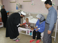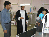 2- زدن پرده ميلاد حضرت امام حسن مجتبي (ع) در ورودي بيمارستان