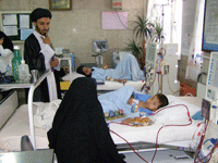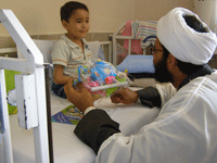 09/04/90 مبعث حضرت رسول (ع) ،پذيرايي از همه بيماران و همراهان با شيريني وزدن پرده تبريك و استفاده از تراك در بردهاي بيمارستان