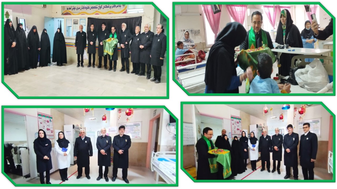 - مورخ 31 اردیبهشت ماه عیادت جمعی ازخدام آستان قدس رضوی از بیماران بستری در بخشهای مختلف و نیز قدردانی از پرسنل زحمت کش بیمارستان با اهدای هدایا و نذورات آستان قدس