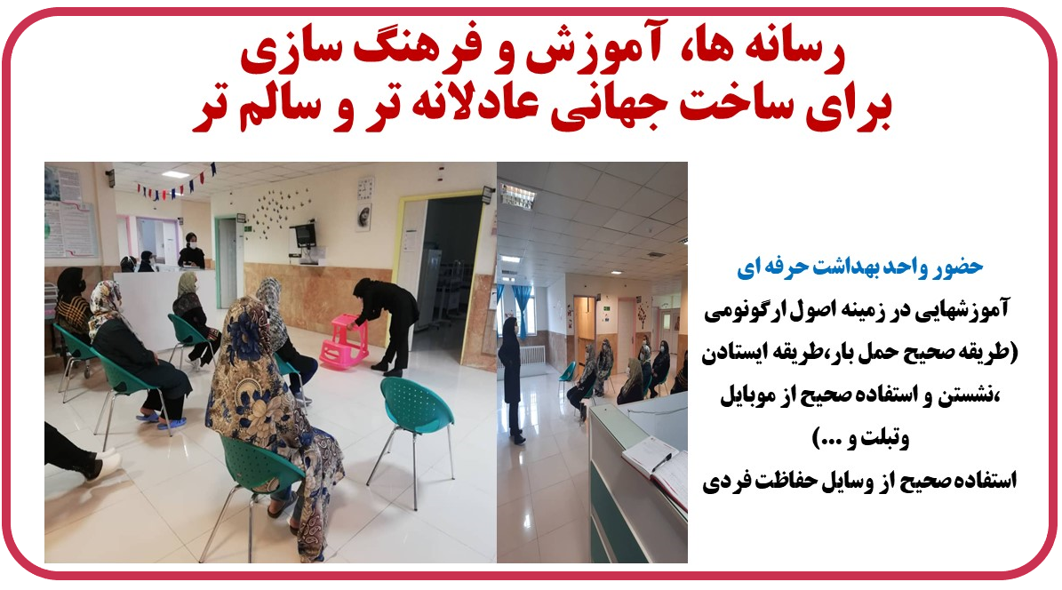 آموزش اصول ارگونومی (طریقه صحیح حمل بار،طریقه ایستادن ،نشستن و استفاده صحیح از موبایل و تبلت و ...) و آموزش استفاده صحیح از وسایل حفاظت فردی |
