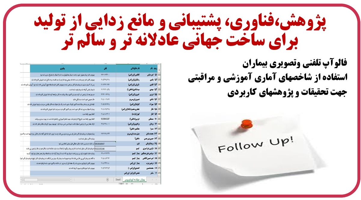 فالوآپ تلفنی و تصویری بیماران، استفاده از شاخصهای آماری آموزشی و مراقبتی جهت تحقیقات و پژوهشهای کاربردی |