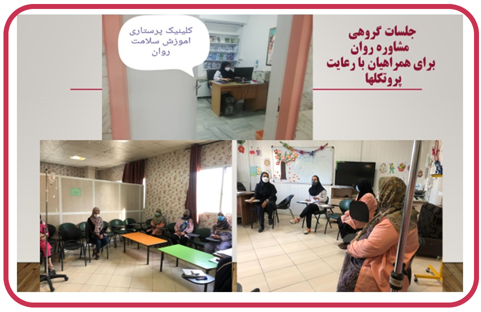| برگزاری جلسات گروهی مشاوره روان برای همراهیان با رعایت پروتکل های بهداشتی | ![]() |