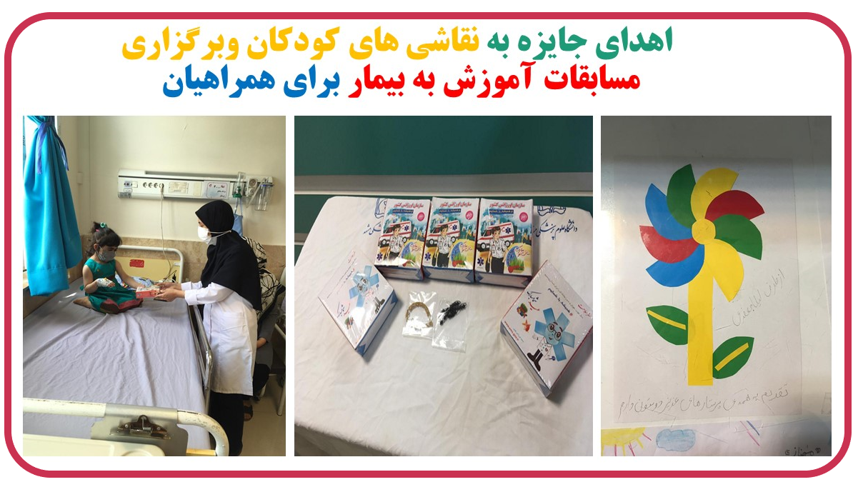 اهدای جایزه به نقاشی های کودکان و برگزاری مسابقات آموزش به بیمار برای همراهیان |