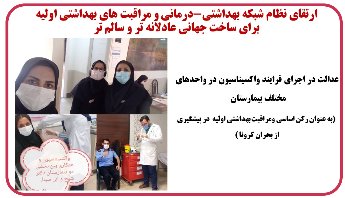اجرای فرایند واکسیناسیون در واحدهای مختلف بیمارستان به عنوان رکن اساسی و مراقبت بهداشتی اولیه در پیشگیری از بحران کرونا |