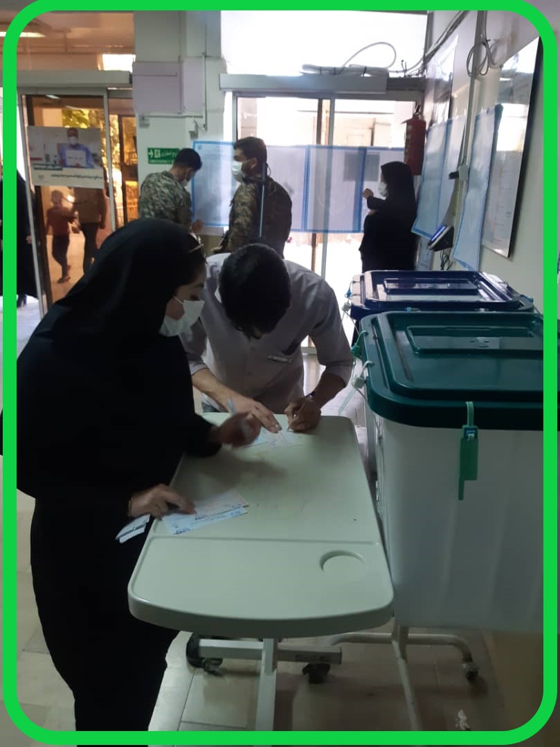 28 خرداد 1400 حضور فعال کارمندان بیمارستان کودکان دکتر شیخ در پای صندوق های رای سیار در بیمارستان جهت شرکت در انتخابات ریاست جمهوری و شورای شهر