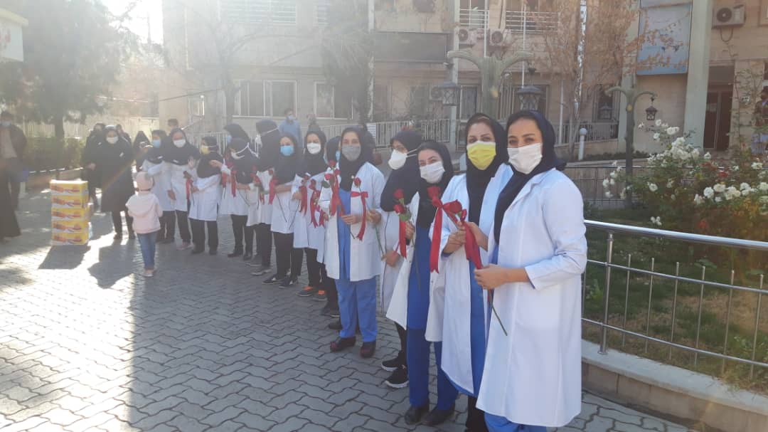 چهارشنبه مورخ 17 آذر ماه 1400 مراسم تبریک روز پرستار مزین به پرچم متبرک امام هشتم توسط کودکان پیش دبستانی امام رضا (ع) با اهدای شاخه گل و کارت تبریک به پرستاران در محوطه بیمارستان برگزار گردید.