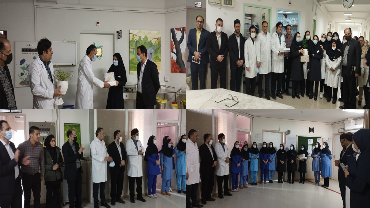 به مناسبت تولد حضرت زینب (س) و روز پرستار، ریاست بیمارستان به همراه معاون آموزشی، مدیریت و مسئولین بیمارستان در جمع پرستاران حاضر در شیفت حضور رساندند و با عرض خداقوت با اهدا شیرینی و گل و هدیه این روز را به تمامی پرستاران زحمت کش تبریک گفتند.