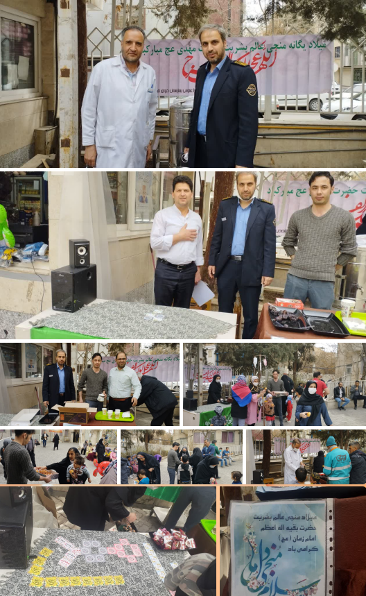 به مناسبت تولد حضرت مهدی (عج) و نیمه شعبان برپایی ایستگاه چای و پذیرایی در حیاط بیمارستان برای بیماران،کارکنان و مراجعین بیمارستان با حضور ریاست و مسئولین بیمارستان