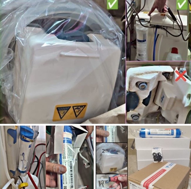 ۱.فیلتر دایاسیف(۴عدد) یک فیلتر آنتی باکتریال قبل از ورود آب به صافی دیالیز و قرار گرفتن در مجاورت خون بیمار است که عدم وجود آن یا عملکرد ناقص سبب بروز صدمات جبران ناپذیر به بیمار در مرور زمان می گردد.