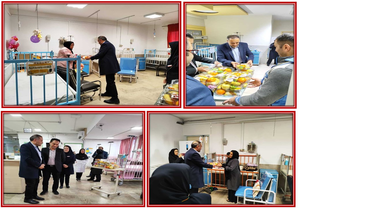 دکتر قاسمی ریاست، دکتر سلحشور مدیریت، خانم بهاری مدیر پرستاری بیمارستان با حضور در بخش های بستری و توزیع بسته های یلدایی پیشاپیش یلدا را به کودکان بستری و خانواده هایشان تبریک گفتند.
