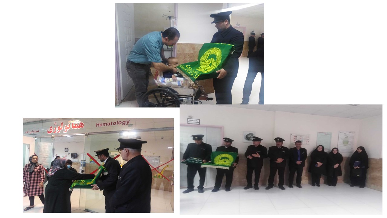 یک شنبه مورخه 23 اردیبهشت ماه خادمین بارگاه ملکوتی امام رضا (ع) با پرچم حرم مطهر رضوی از بیماران بستری در بیمارستان عیادت نمودند به گزارش روابط عمومی، همزمان با دهه ی کرامت، خادمین حامل پرچم سبز حرم مطهر حضرت امام رضا(ع) با حضور در بیمارستان، با پرسنل و بیماران بستری در بخش های درمانی این بیمارستان دیدار کردند.