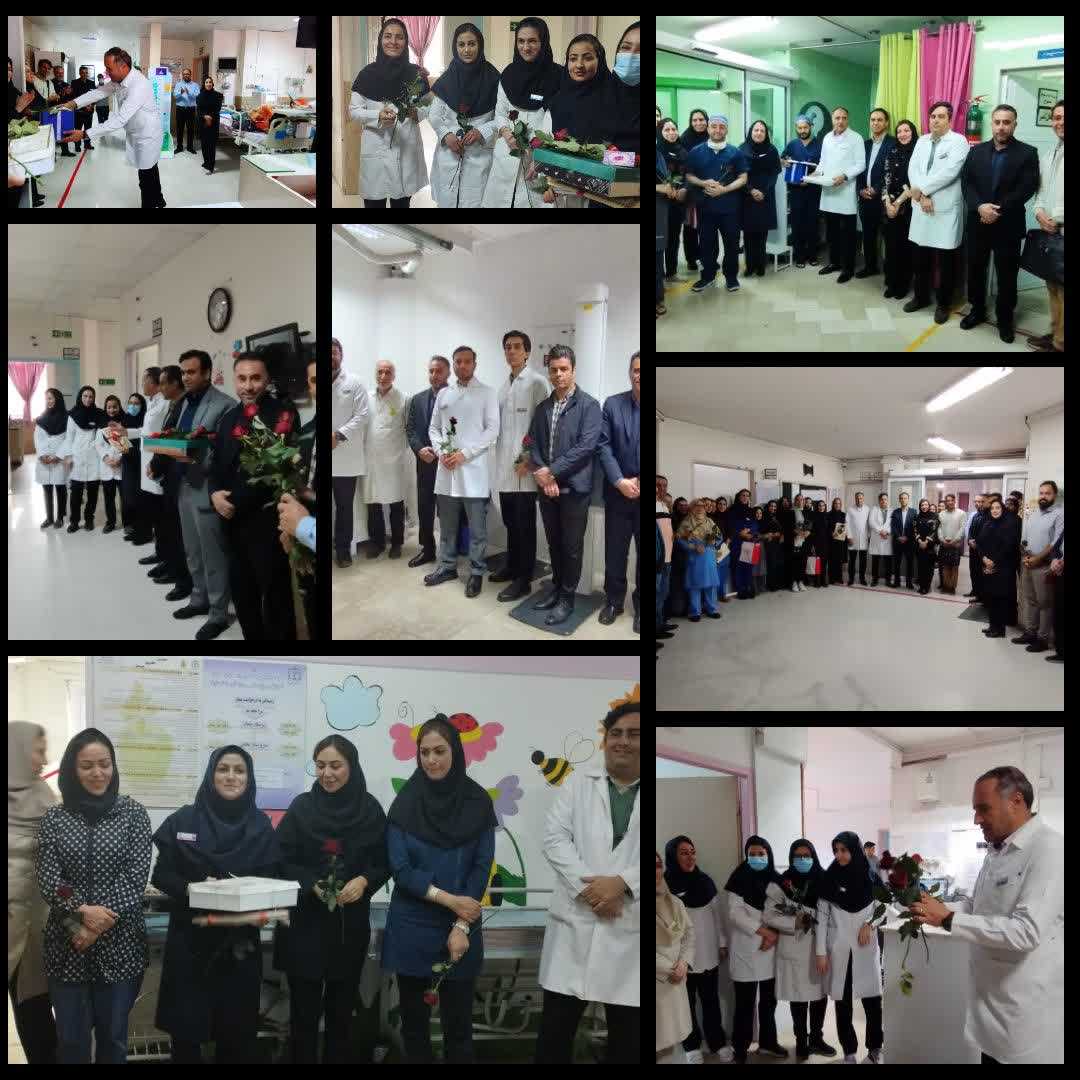 همچنین ریاست بیمارستان به همراه مسئولین ارشد از تمامی بخش های بیمارستان بازدید به عمل آوردند و با اهدا گل و شیرینی و هدیه این روز را به همکاران پرستار تبریک گفتند.