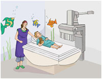 بیمار به اتفاق دو نفر همراهی که لزوما بایستی حامله و باردار نبوده و توانایی نگهداشتن کودک در حین انجام رادیوگرافی را داشته باشند در روز و ساعت مشخص شده به بخش رادیولوژی مراجعه می کند